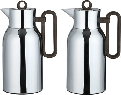 Al Saif Gallery Al Durra Thermos Set, 1/1 Liter, 2 Pieces, Glass Inner Container, Push Button, Wooden Handle - Silver