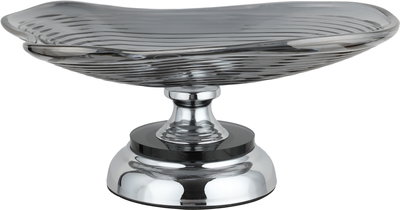 Al Saif Gallery Stated Stainless Steel Glass Serving Stand, Round Base, 33X24X13.5 Cm - Transparent Silver