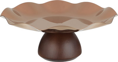 Al Saif Gallery Stadt Stainless Steel Wood Serving Stand, Wooden Base, 27X27X12 Cm - Brass