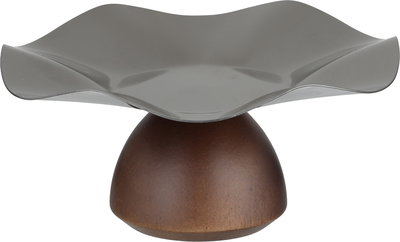 Al Saif Gallery Stadt Stainless Steel Wood Serving Stand, Wooden Base, 17X17X8 Cm - Silver