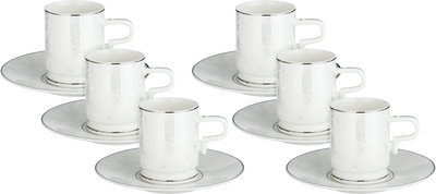 Al Saif Gallery Turkish Porcelain Coffee Cup Set, 14 cm, 12 Pieces, Saucers - White