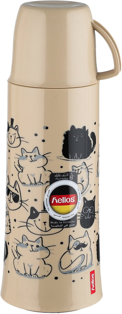Helios German Thermos with Lid, 0.5 Liter, Heat-Resistant Glass Inner Container, Self-Service - Beige/Black