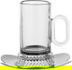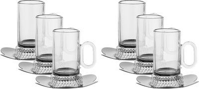 Al Saif Gallery Glass Tea Set, 12 Pieces, 12cm Stainless Steel Saucers - Transparent Silver