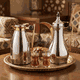 Al Saif Gallery thermos set, 1 liter, golden handle, thermal glass inner case, steel outer body - silver