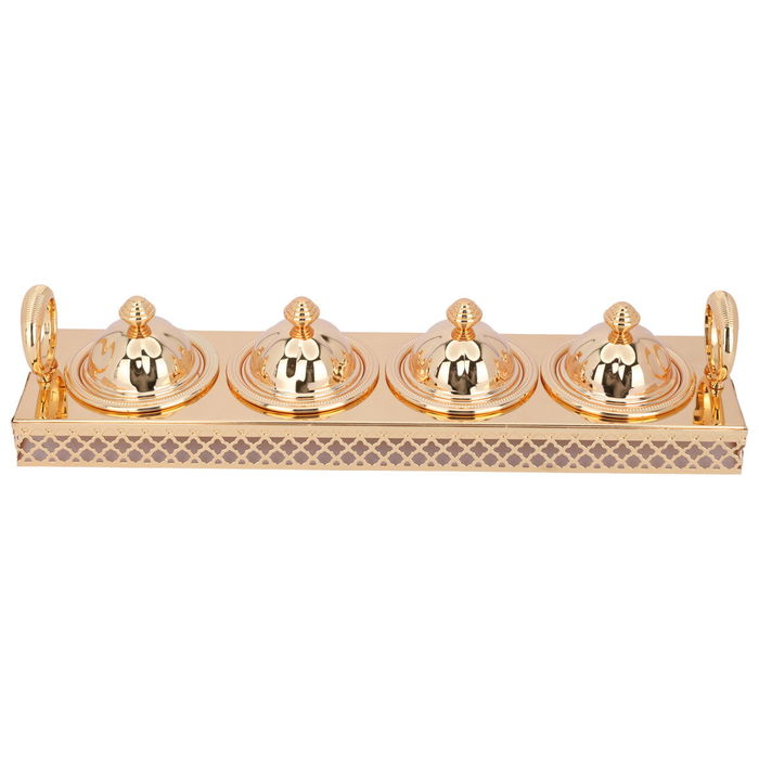 A golden tamriaset consisting of 5 perfectly arranged pieces for you to enjoy dates