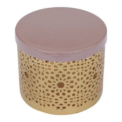 Al Ain Al Andalusia Steel Storage Box with Lid, 15 x 15 x 12 cm, Round - Gold